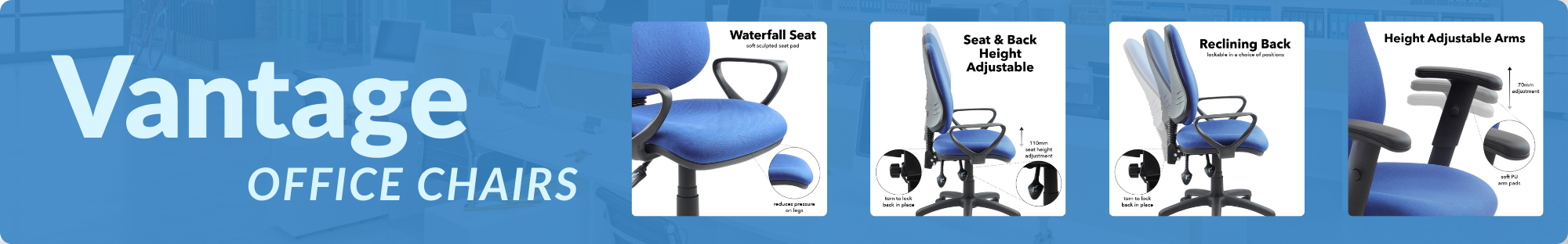 Vantage 100 2 lever PCB operators chair with adjustable arms - blue